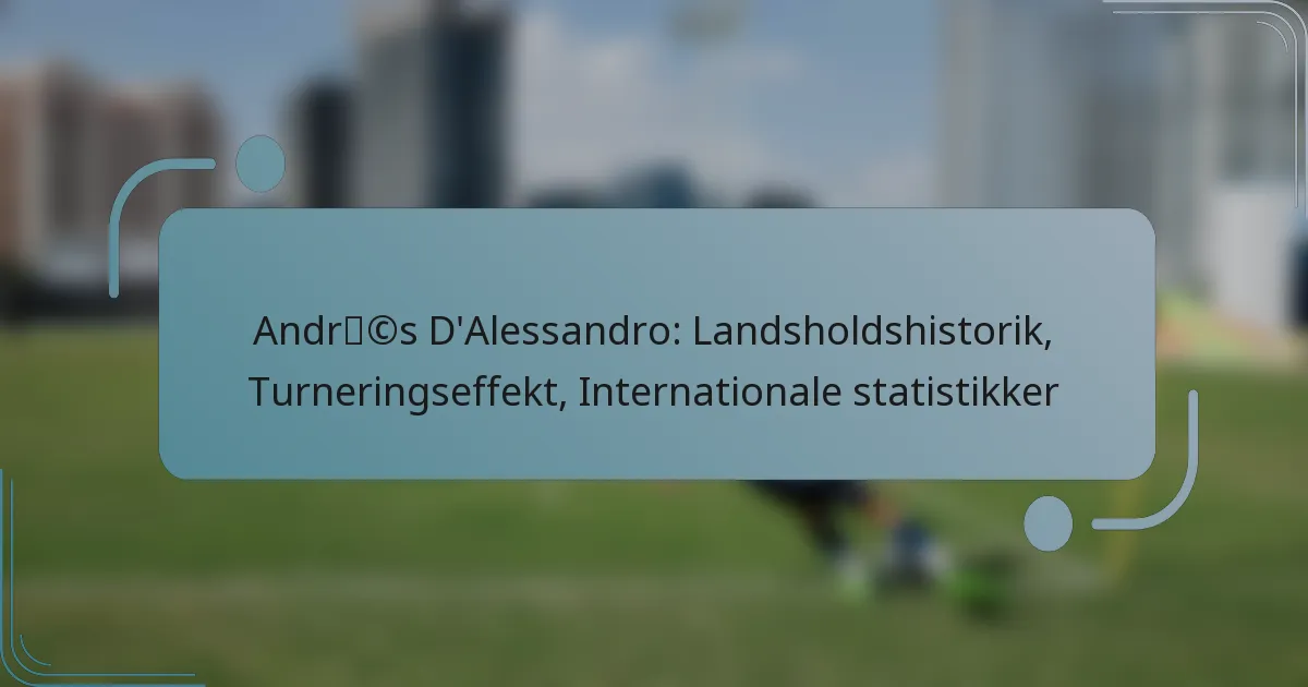Andrés D’Alessandro har en fremtrædende historie med det argentinske landshold, hvor han debuterede i begyndelsen af 2000’erne og spillede en central rolle i flere store turneringer. Hans dygtige bidrag og lederskab har haft en betydelig indflydelse på holdets præstationer og efterladt en varig arv. Gennem sin internationale karriere fremhæver D’Alessandros statistik hans effektivitet på banen, hvor han viser sin evne til at levere afgørende mål og assists i nøglekampe.